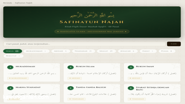Akhirnya saya cari datanya, susun strukturnya, desain tampilannya, dan sekarang fitur itu sudah jadi. Namanya sederhana saja: Safinatun Najah. Bisa diakses langsung dari submenu Layanan di blog ini.